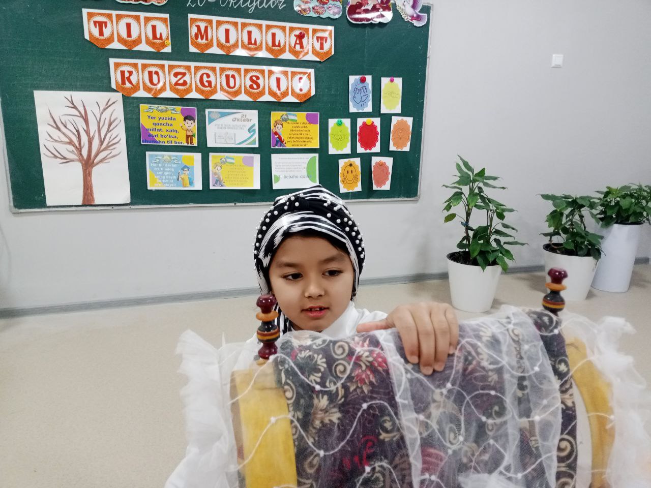 1 V - sinfida 21-oktabr O‘zbek tili bayrami kuni mavzusida tayyorlangan dars jarayonidan lavhalar