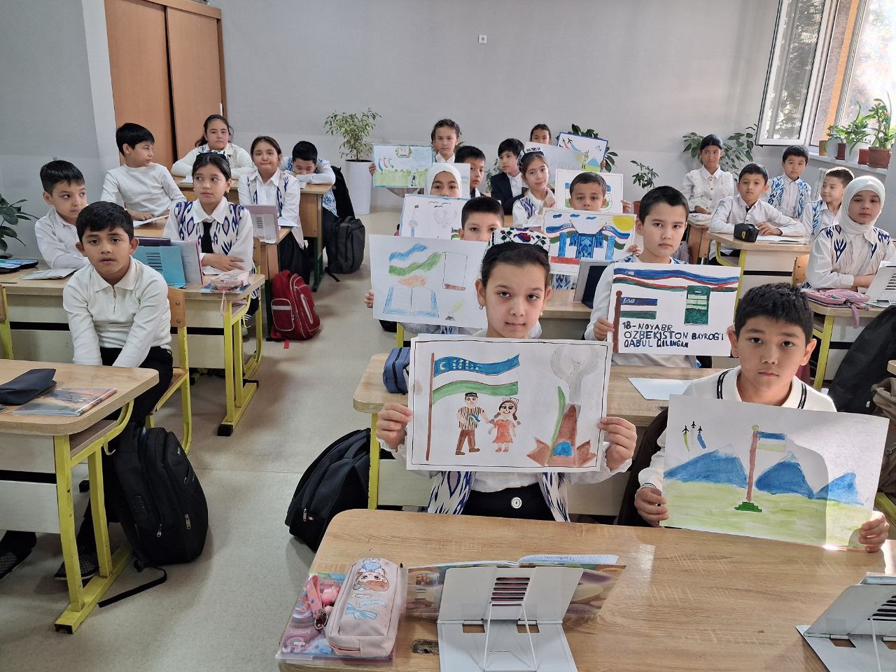 Мaktabimizda boshlang'ich sinflari o‘rtasida "Boshim uzra hilpira O‘zbekiston bayrog‘i" mavzusida rasm ko‘rik tanlovi bo‘lib o‘tdi