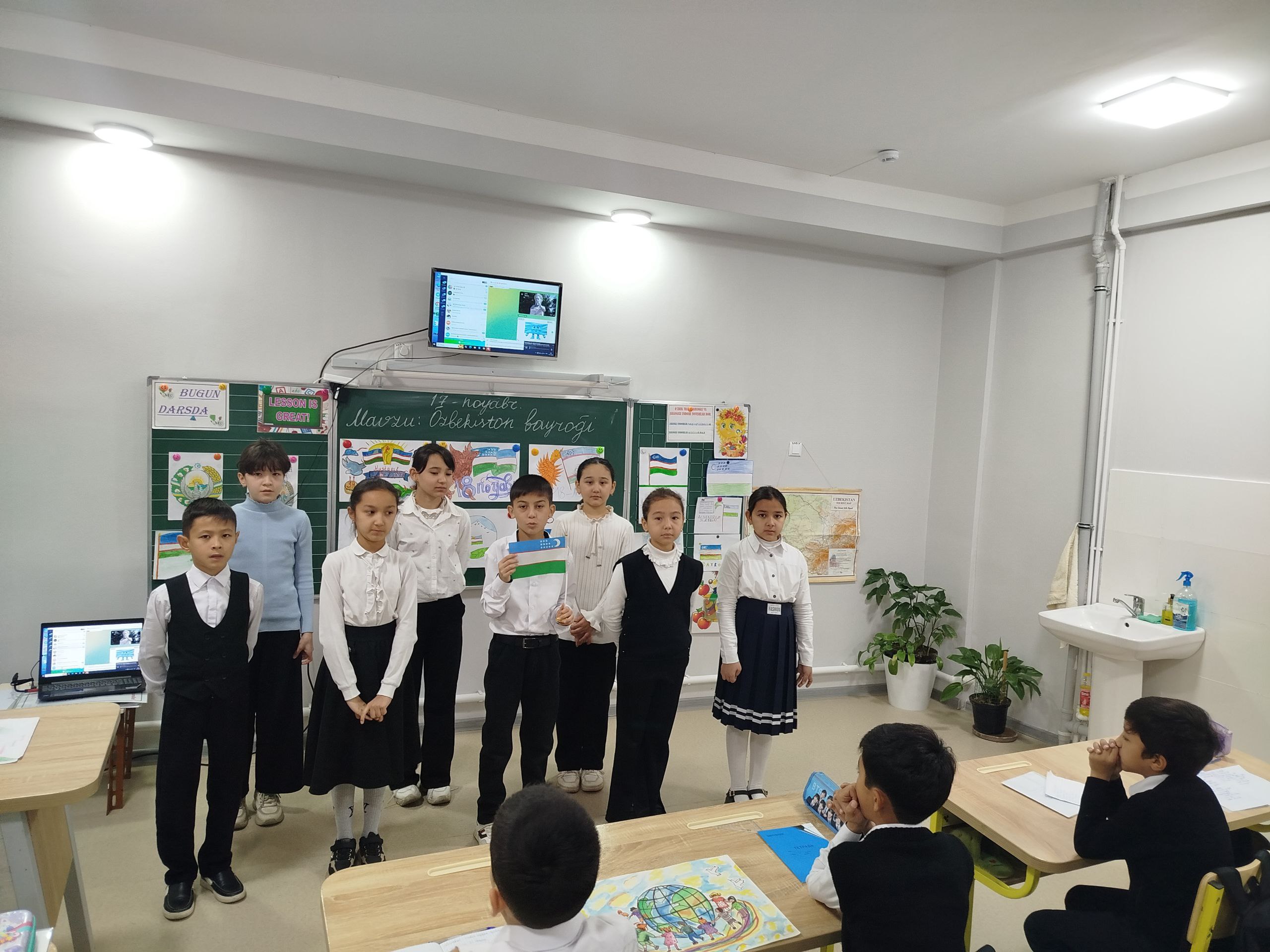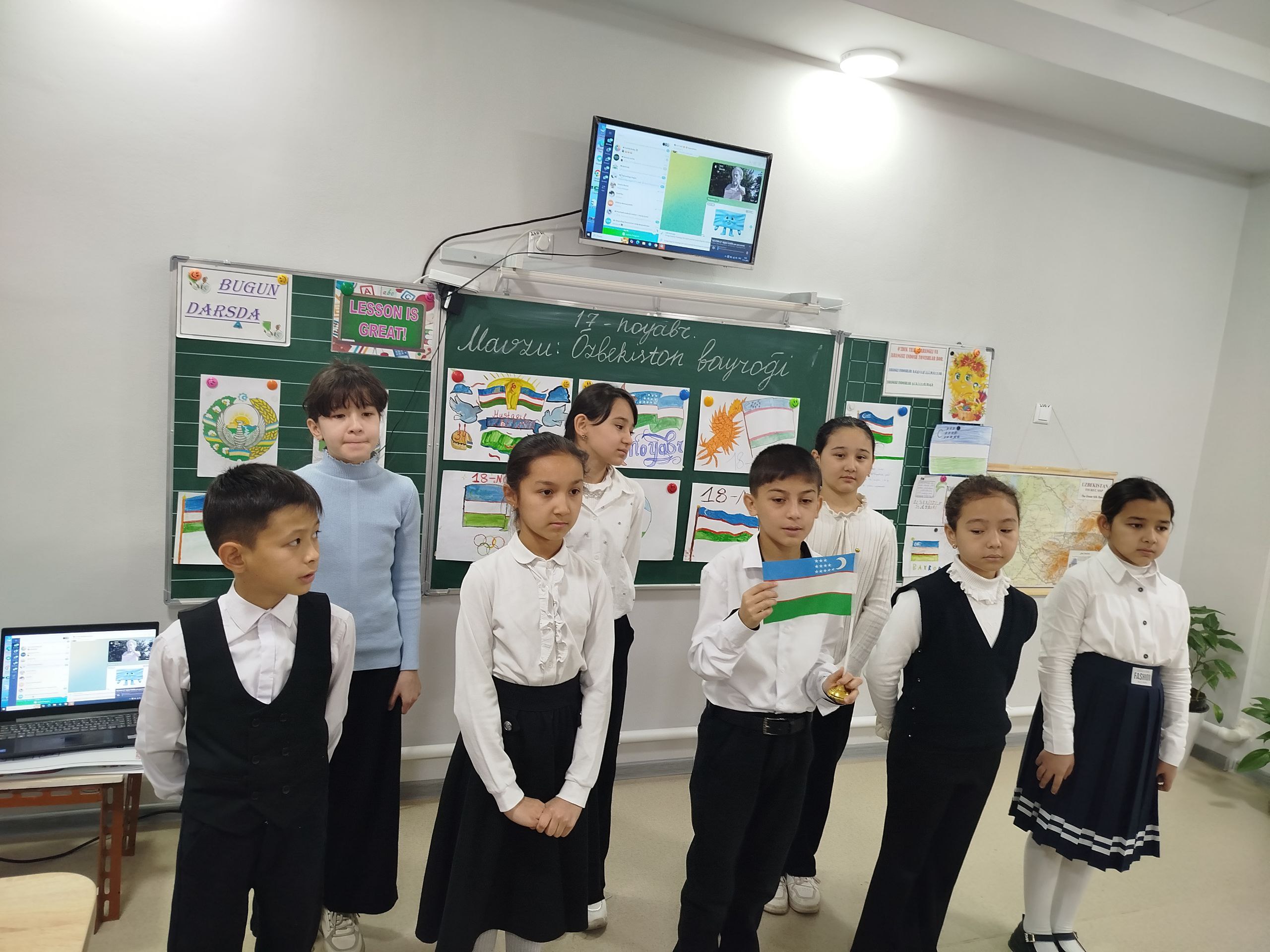 4 V - sinfda Kelajak soati darsida "Bayrogʻimiz-faxrimiz"mavzusida dars o‘tkazildi