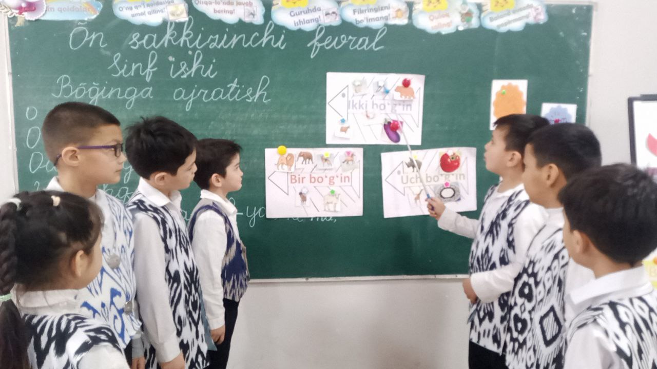 1 V - sinfida "Bo'g'in bo'g'inga ajratish" mavzusida ochiq dars tashkil etildi