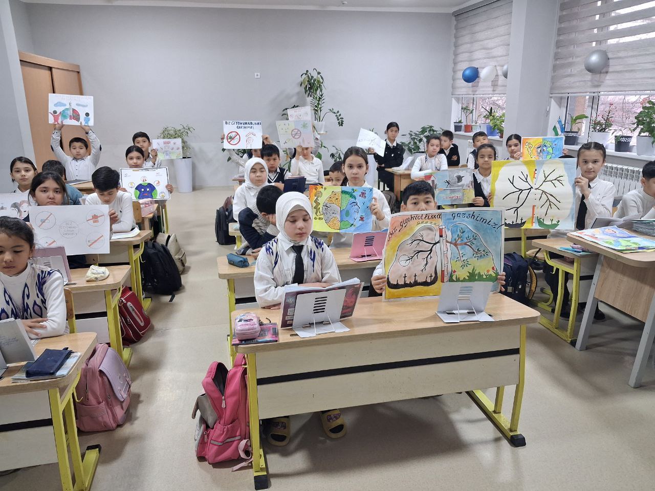 4 A - sinfida "Biz giyohvandlikka qarshimiz" mavzusida rasm ko‘rik tanlovi bo‘lib o‘tdi