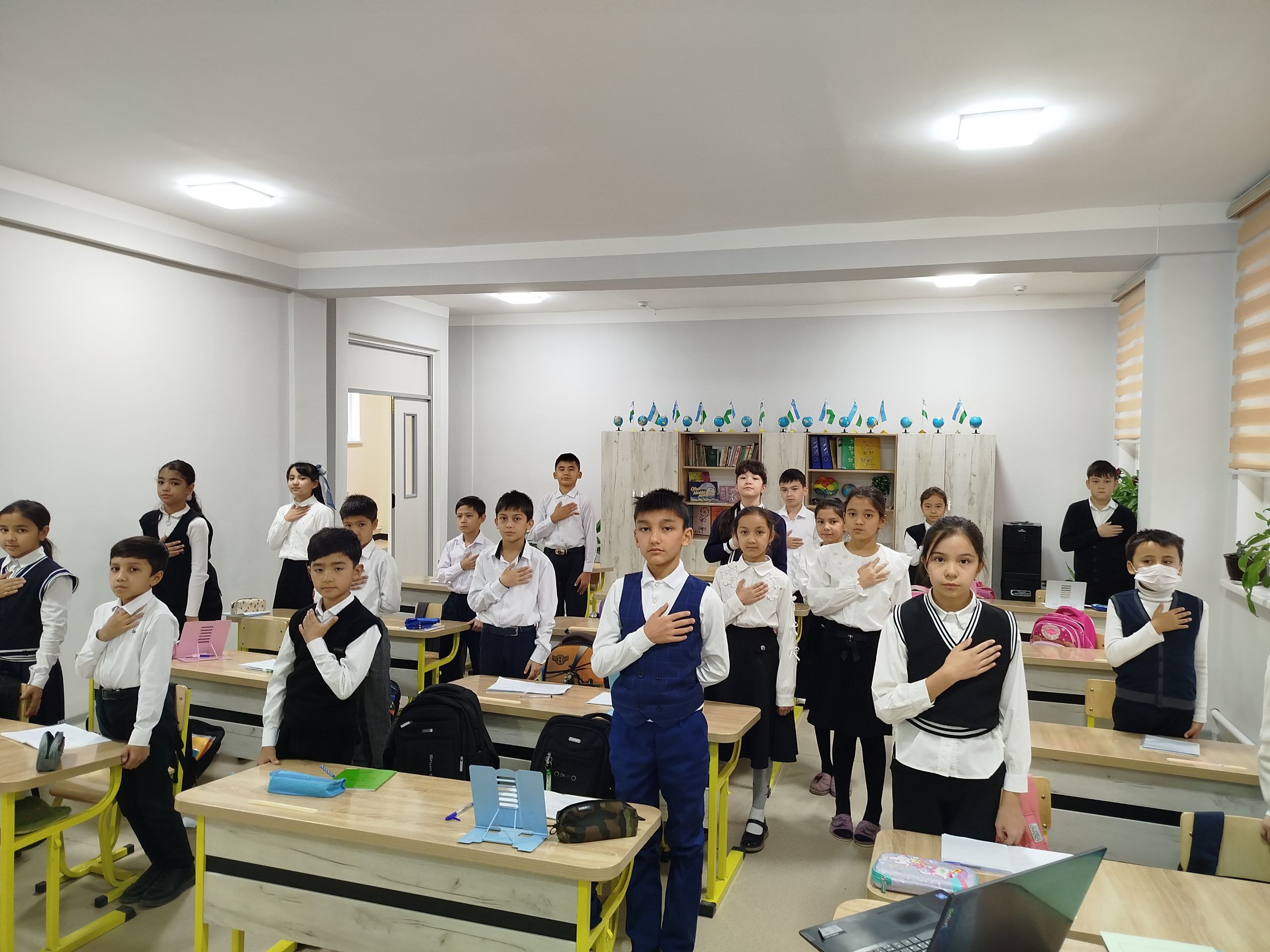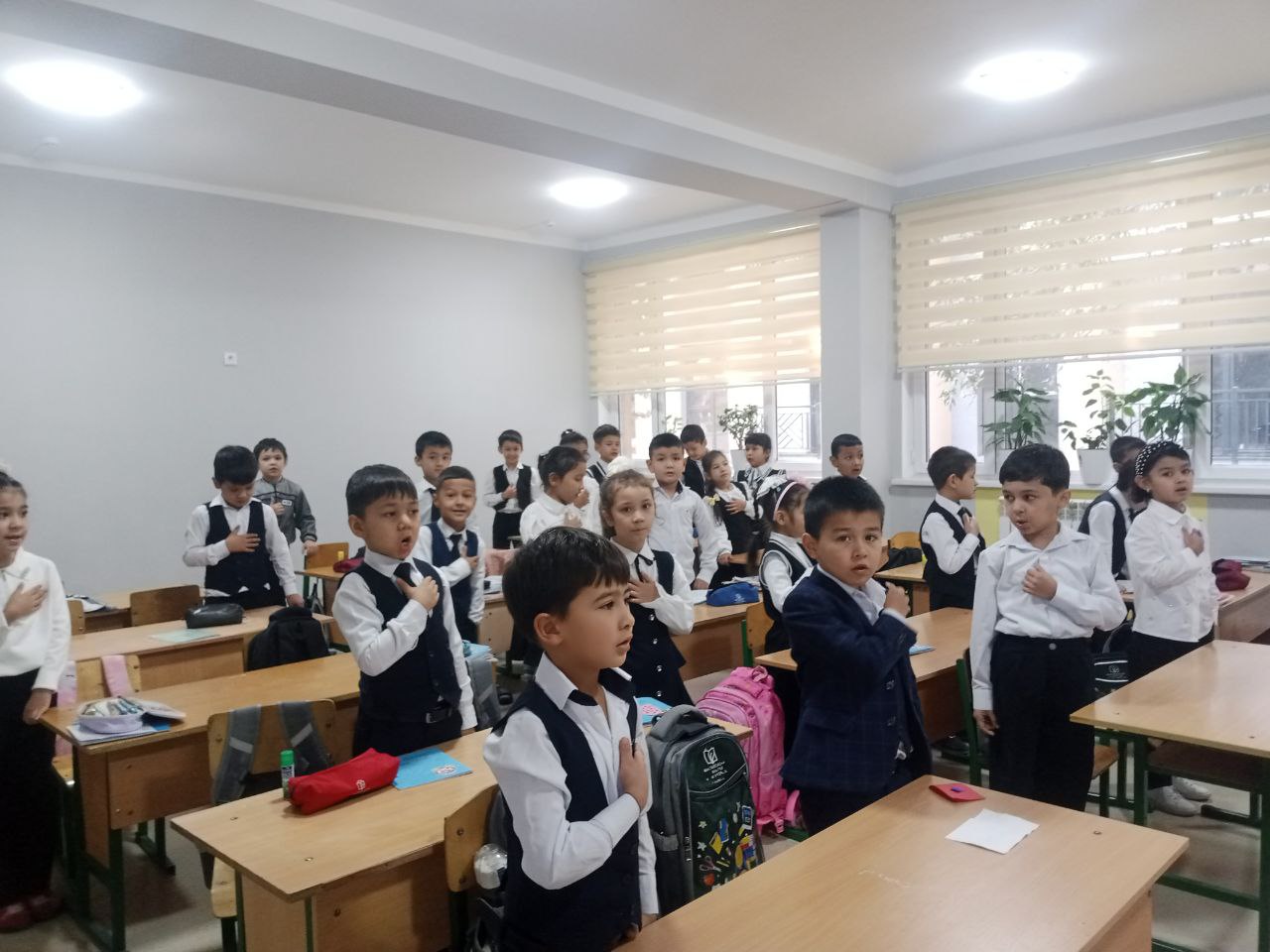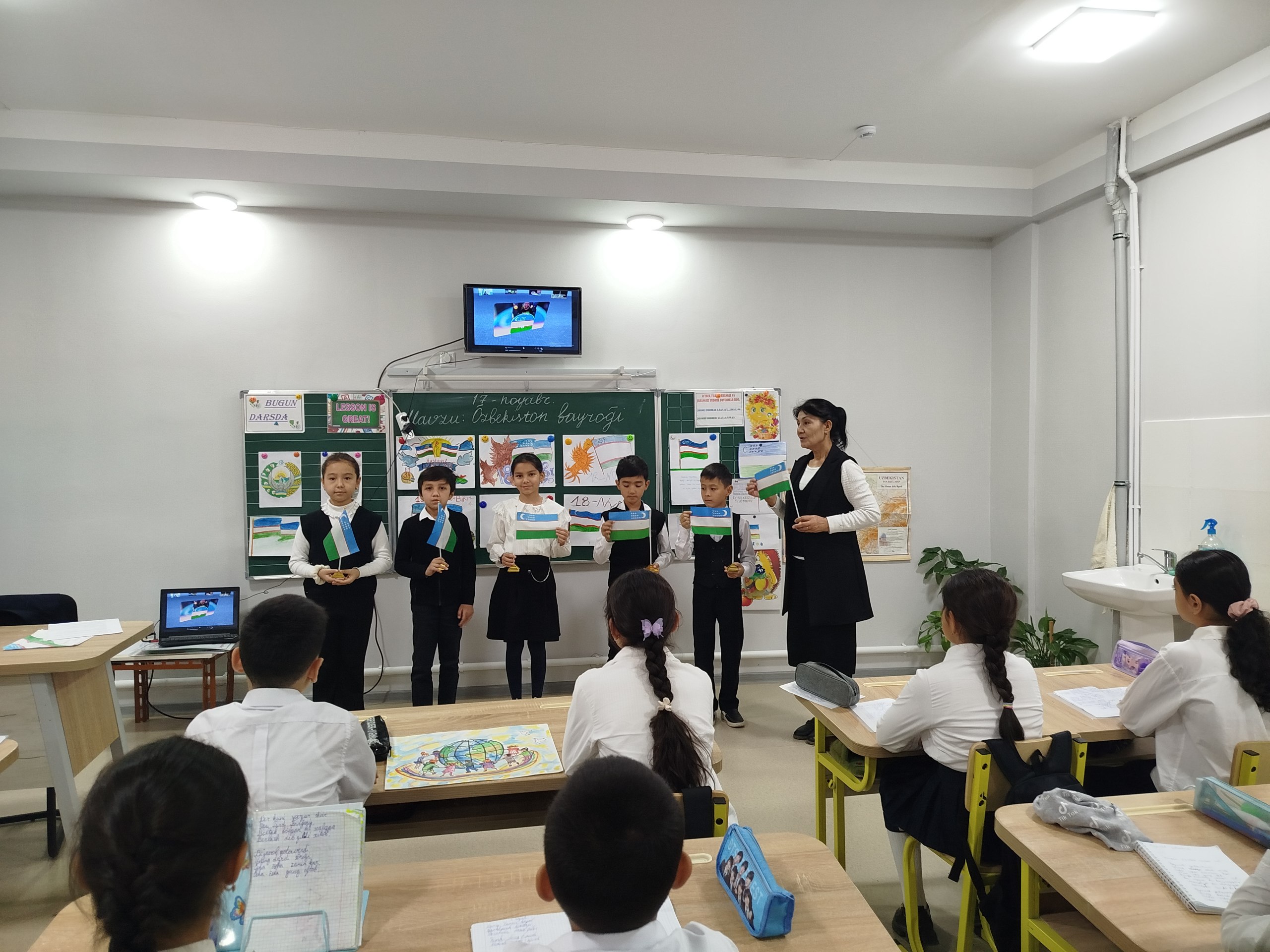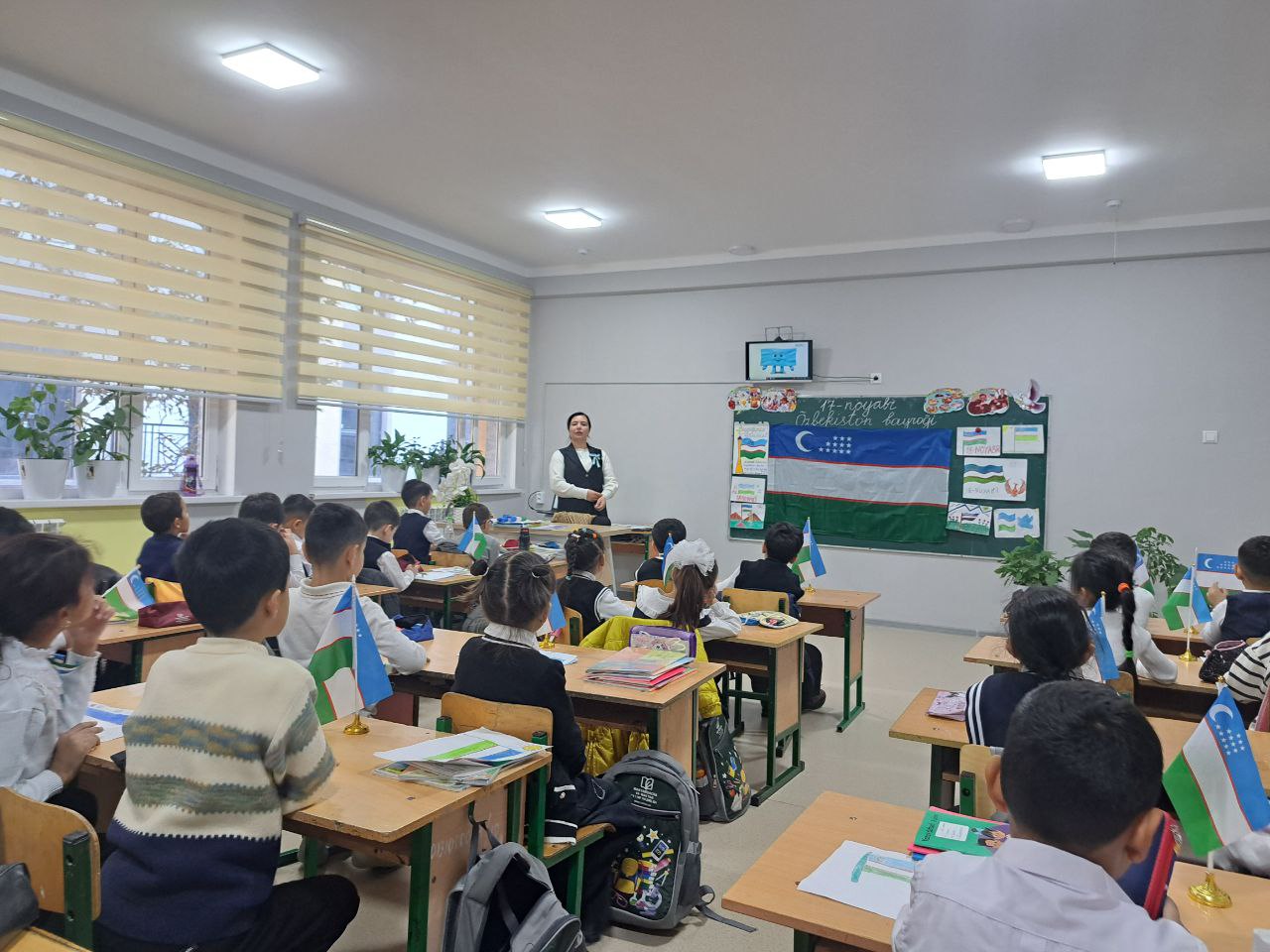 1 V - sinfda Kelajak soati darsida "Bayrogʻimiz-faxrimiz" mavzusida dars o‘tkazildi